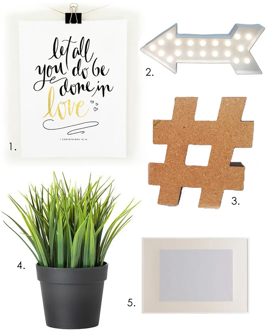 hours of me being sad about it's placement, I realized that there was more room for cute decorations, so I got over it. I'll have to save the cable-hiding details for another day. It deserves a post in itself! Here's the supplies I've used to balance out the mantle: